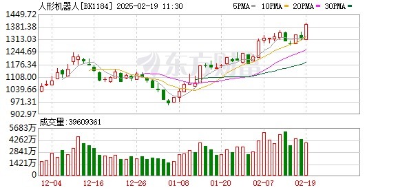 人形机器人概念板块大幅走强,万得人形机器人指数涨近5%,该指数成份股中,双林股份、长盛轴承涨超18%,丰立智能涨超10%,新时达、弘讯科技等多股盘中涨停。