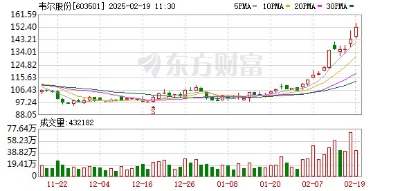 A股市场上午整体走强,芯片赛道整体走强,千亿市值龙头股韦尔股份盘中一度暴涨近8%。